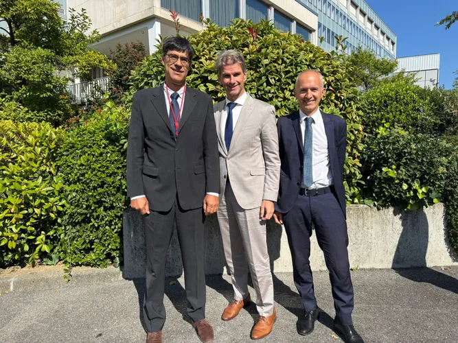 LRH-Direktor Günter Bauer (Mitte) mit EURORAI-Präsident Joan C. Rosselló Villalonga (links) und Charles Pict, Direktor des Internen Auditdienstes des Kantons Genf.